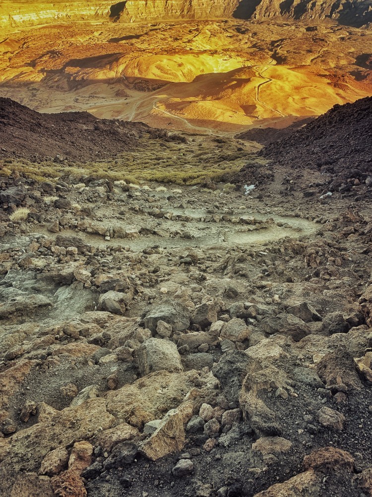 - Wanderung zum Pico del Teide. Sehr gute Kondition erforderlich. Überwiegend gut begehbare Wege. Trittsicherheit erforderlich. Der Startpunkt der Tour ist mit öffentlichen Verkehrsmitteln erreichbar.